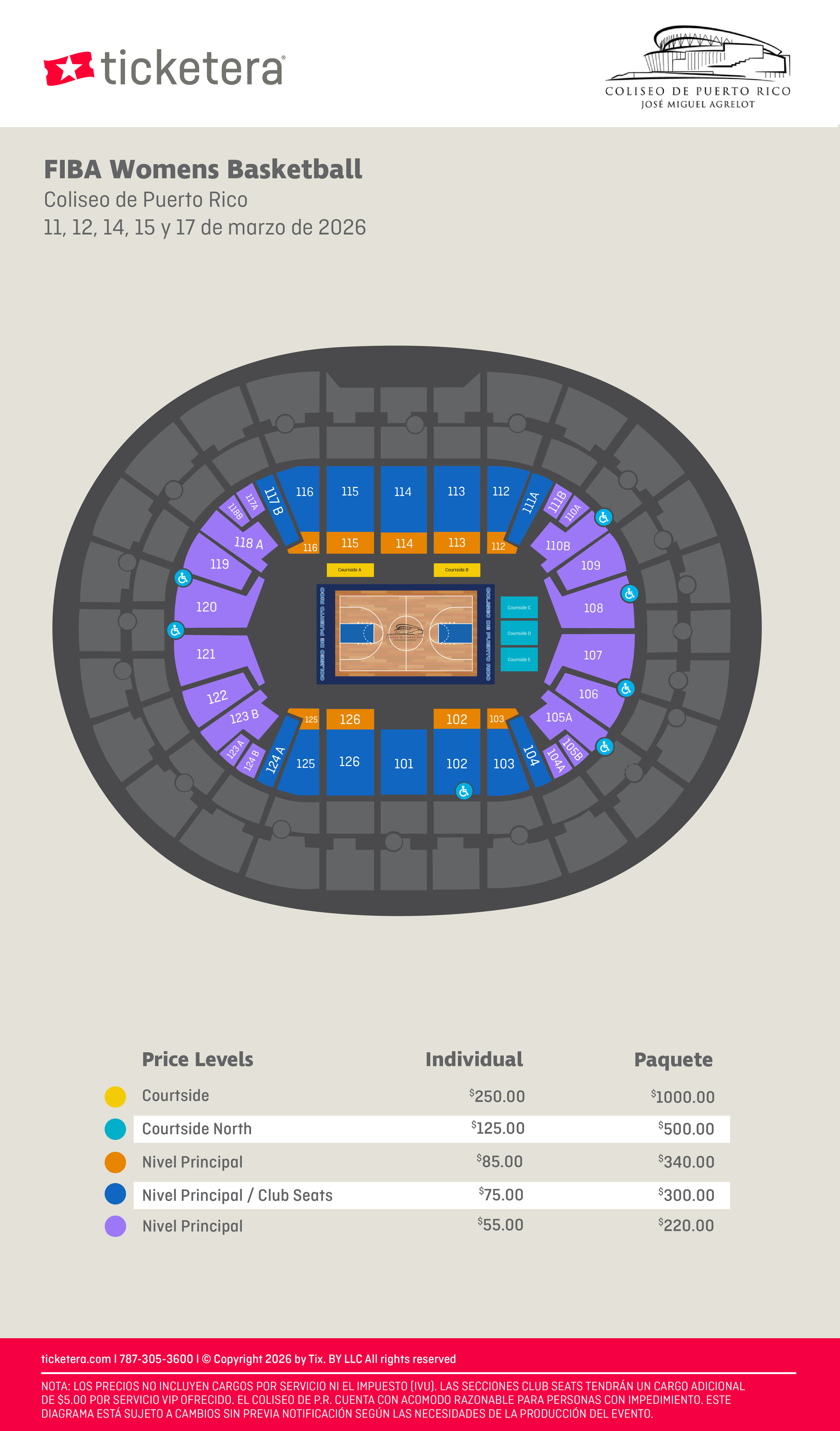 Al adquirir boletos en una sección ADA (WH), el comprador acepta presentar una tarjeta de impedido o carné válido el día del evento como requisito de entrada.